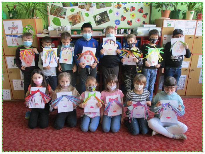 Ve 2. A paní učitelka Iva Králová s dětmi nezahálí. Při výtvarné výchově a pracovních činnostech si s dětmi opakuje prvouku i angličtinu. Nevěříte? "Lidské tělo i slovíčka z angličtiny - to vše si děti procvičily při výrobě zábavných obličejů," vysvětluje třídní. Všechny děti práce moc bavila, o čemž se můžete přesvědčit ve fotogalerii. Poznáte, kdo se na společné fotce ukrývá za svými výtvory? Další obrázek prozradí, zda byl váš tip správný!