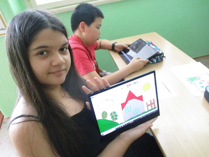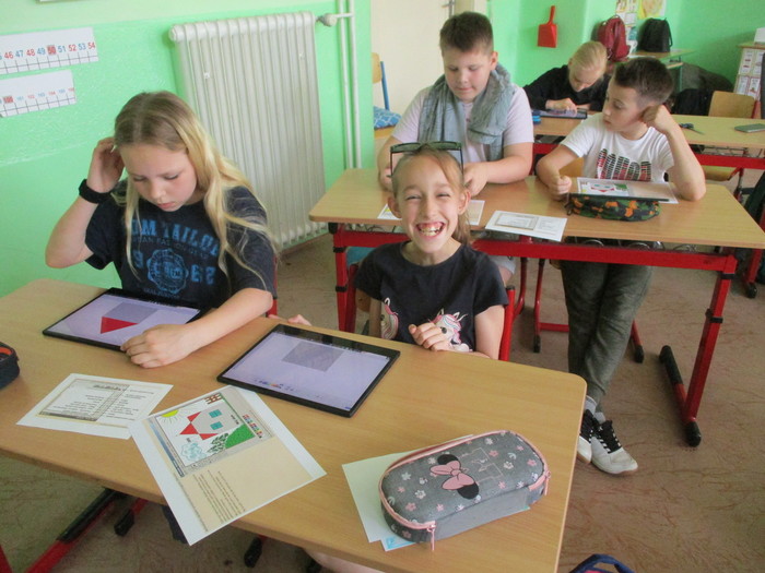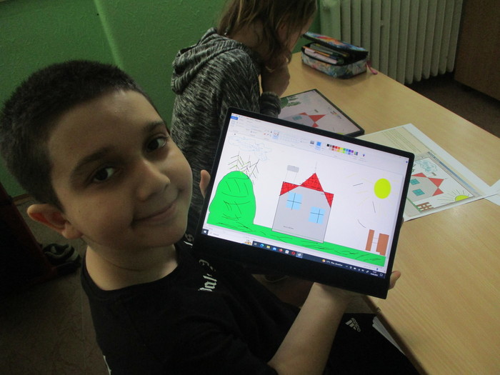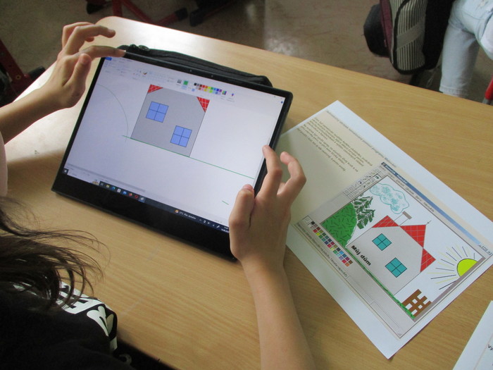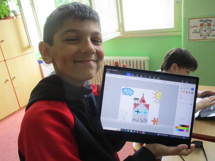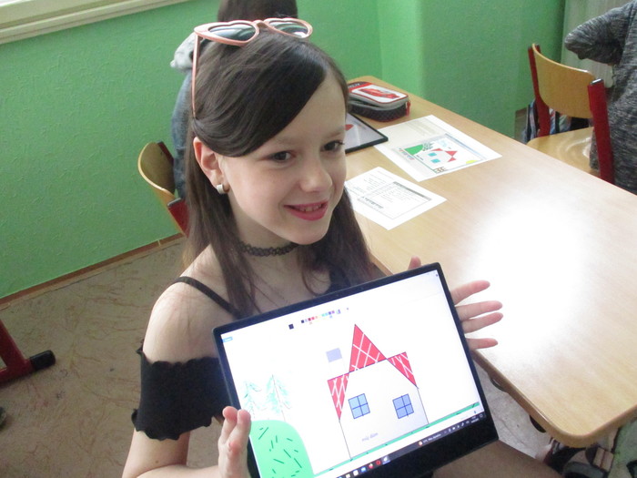 Třída 4. A se zdokonaluje v práci na tabletu. Máme velkou výhodu, že si můžeme zapůjčit tablety pro všechny žáky. Tentokrát jsme propojili výtvarnou výchovu a informatiku. Moc nás to všechny bavilo!
