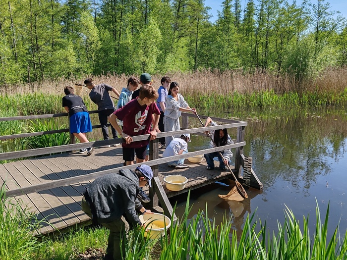 Výzkumná expedice osmáků vyrazila na badatelské dopoledne do pražského mokřadu, kde osmáci našli sedmnáct různých druhů živočichů. Tím si potvrdili hypotézu, že na jaře u vody to žije nejvíc!